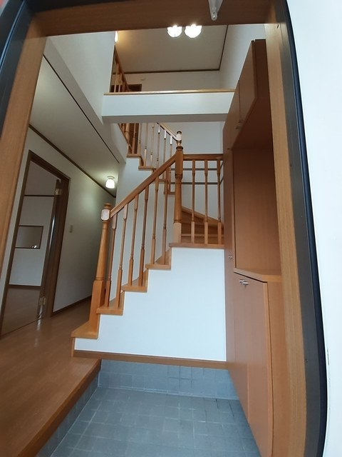 | 設 備 | 洗面化粧台(シャワー付)/給湯(ガス)/上水道(公営)/下水道(不明)/ガス(LPガス)/エアコン/TV付インターホンあり/BSアンテナ/洗濯機置場/浴室乾燥機/床下収納/シューズボックス/クローゼット/物置/複層ガラス/バルコニー/防犯カメラ/全室洋室/24時間換気システム/ 階段下収納/クッションフロア/セキュリティキー/24時間管理 |