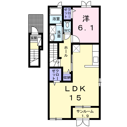 | 建物構造 | 木造 地上2階 戸数8戸 (所在2階) | ||