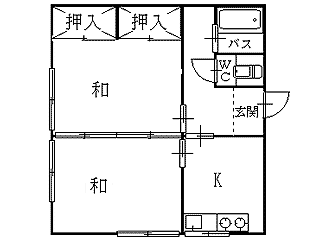 間  取 2K(和:6帖×2 キッチン:3帖)
